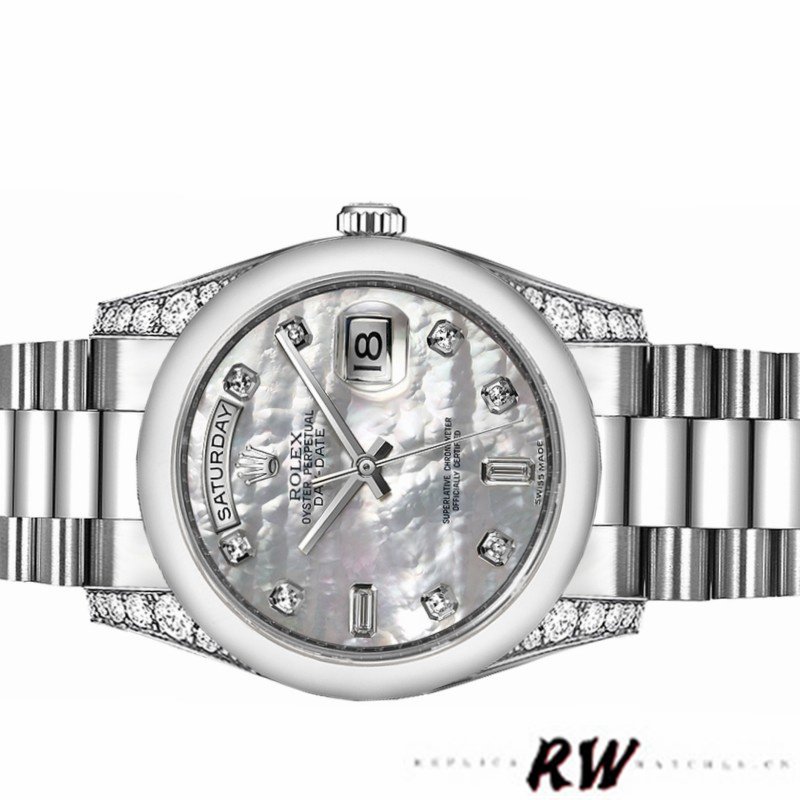 Rolex Day-Date 118296 Platinum MOP White Dial Diamond 36mm Unisex Replica Watch