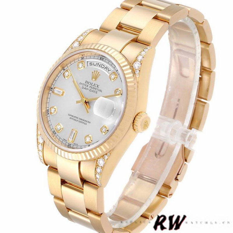 Rolex Day-Date 118338 Yellow gold Silver Diamond dial 36mm Unisex Replica Watch